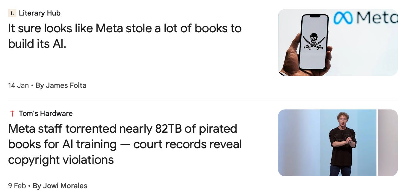 To me, it feels much worse than finding all of my titles on that list of books Mark Zuckerberg stole and fed into the Meta-furnace to fire up his AI ambitions. My books were routinely pirated/stolen/liberated-from-the-copyright-gulag by normal human beings long before the Zuckerbot decided his trillion-dollar dopamine mill couldn’t survive without super-massive intellectual property theft. Discovering I’d been ripped off by a billionaire was less revelation than a simple confirmation of how stuff works for real.